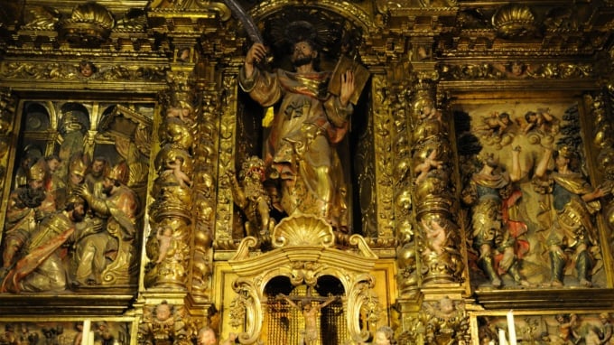 大聖堂の内部には、建物を取り囲むように28の小さな礼拝堂が配置されています。きらびやかな装飾で飾られた黄金の祭壇は、キリストとさまざまな聖人に捧げられています。ミサに参加する崇拝者たちは、自分たちが大切にしている聖人の礼拝堂を訪れ、祈りを捧げます。