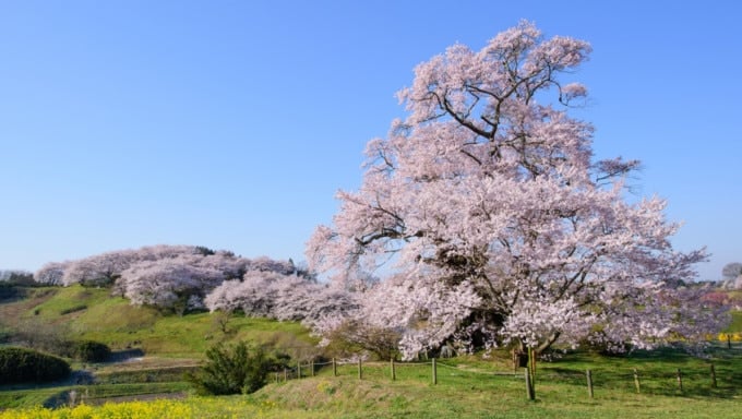 本宮市の春の桜の名所のひとつが「塩崎の大桜」です。毎年4月中旬から下旬にかけて満開を迎えます。このエドヒガン桜の見事な姿は、地元の観光客だけでなく、この桜を見るために県外から訪れる人もいるほどです。