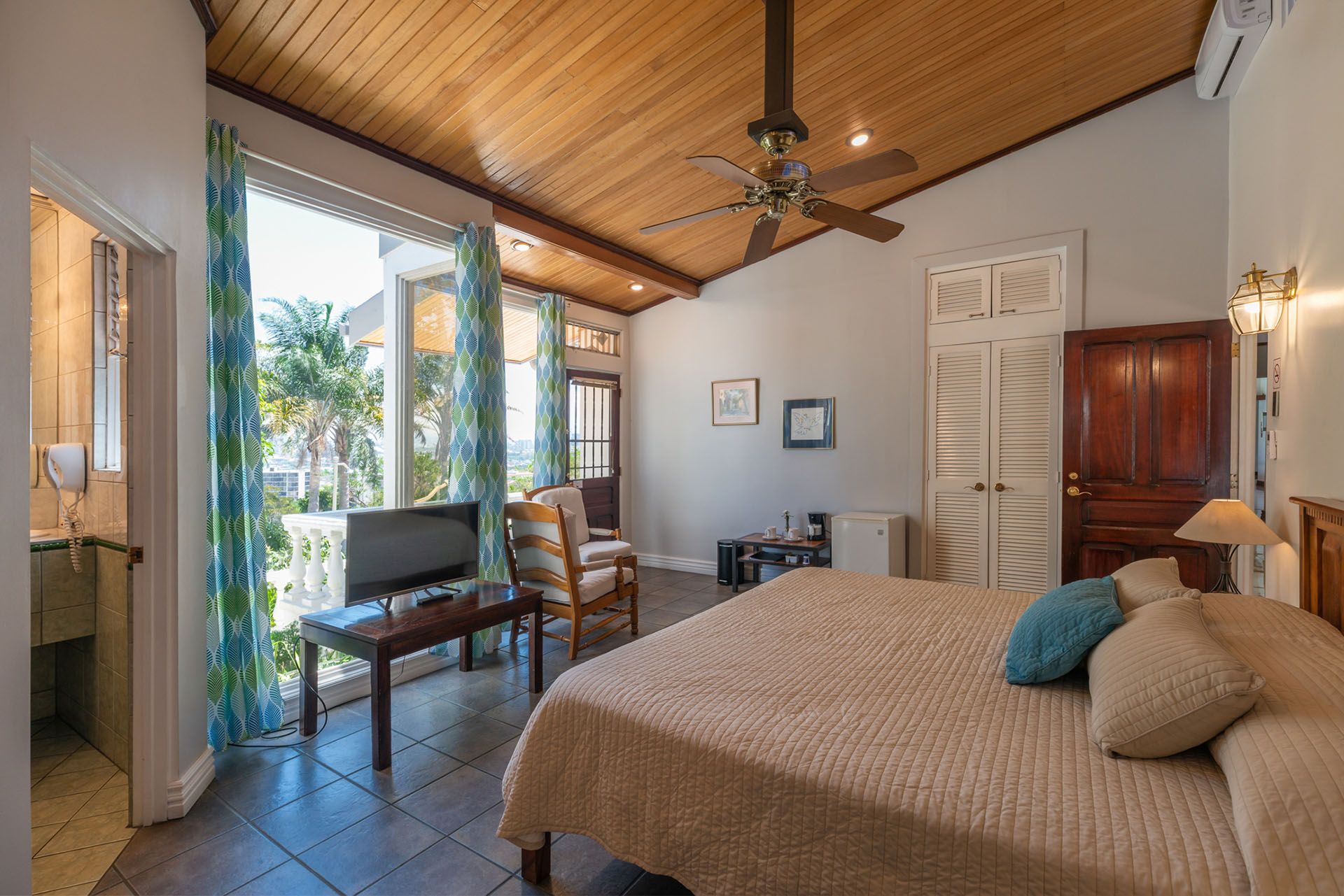 夏の黄色で彩られ、アートで覆われ、トロピカルな花々で満たされたこの神聖な小さなゲストハウスは、オオハシのくちばしのように輝いています。各部屋は個別にスタイルされています。かわいいダイニング ルームに加え、日陰のあるバルコニーもたくさんあります。コスタリカにいる喜びを満喫するのに最適な場所です。