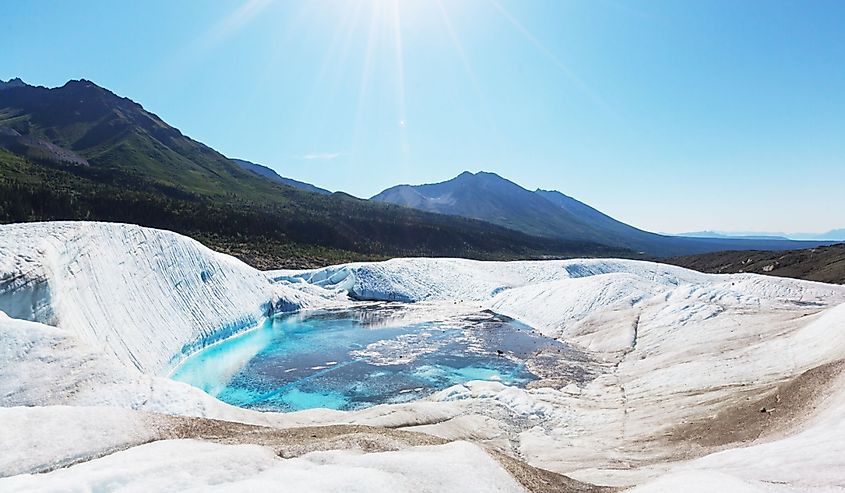 ランゲルセントのケニコット氷河にある湖。エリアス国立公園および保護区。