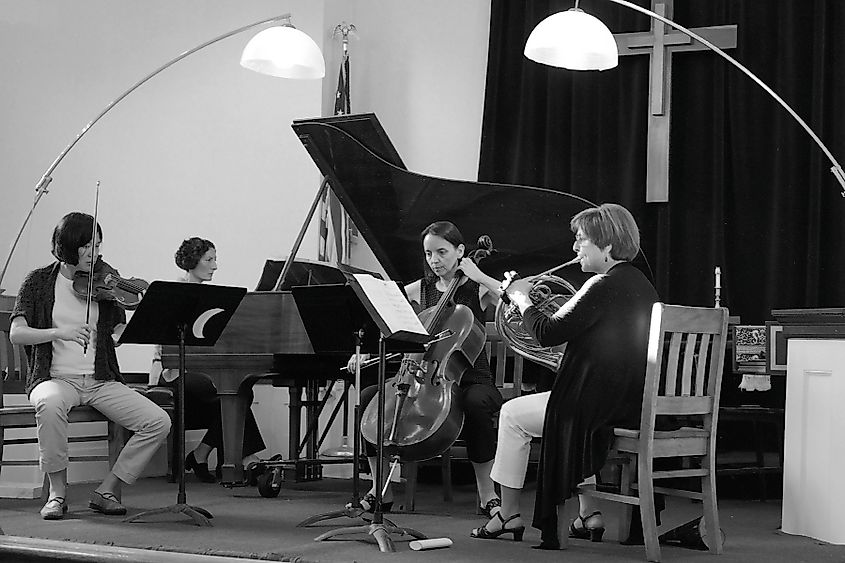 これらのコンサートは、シャールモントの隣町にあるシャールモント連邦教会で開催され、ピアニスト、ヴァイオリニスト、ホルン、ジャズミュージシャンなどが出演し、カジュアルでフレンドリーな雰囲気の中で室内楽を披露します。夏に音楽シーンを求めてシェルバーン フォールズを訪れることができない場合でも、フラッドウォーター ブリューイング カンパニーのカレンダーをチェックして、ほぼ毎週末開催されるライブ音楽イベントに参加することができます。