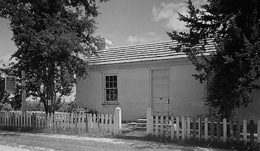 この国で最も偉大な 19 世紀芸術家の 1 人は 1800 年代半ばにアロー ロックに住んでおり、今日旅行者が訪れるために彼の家を残しました。ミズーリ州フランクリンの町から追放された後、ビンガムの家族は、ビンガムが子どもだった 1829 年にアロー ロックに移住しました。ビンガムは結婚し、1837 年にアロー ロックに最初の住宅を購入しました。この家は 1965 年に国定歴史建造物となり、今でもハイ ストリートとファースト ストリートの交差点に建っています。