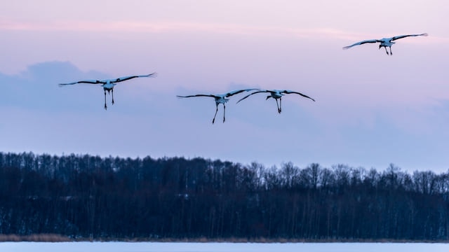 タンチョウヅルは現在でも釧路湿原が主な生息地とされており、知床半島でもタンチョウに会える保証はありません。湿原の北西にある阿寒郡鶴居村の「鶴居・糸タンチョウ保護区」では、餌が不足する11月から3月にかけて餌やりが行われます。この保護区には、レンジャーがさまざまな保護活動を行う自然センターもあります。適切な季節に訪れると、餌場に集まるツルの姿を間近で観察することができます。