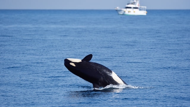 知床ネイチャークルーズは長年の経験を活かし、観光客を目撃できる可能性の高いエリアへご案内します。ただし、野生動物であるため、必ず目撃できるわけではありません。しかし、シャチは好奇心旺盛で賢いため、恐れることなくボートに近づくことがよくあります。本当に運が良ければ、クルーズ船のすぐ近くまで来てくれることもあり、乗客は大喜びです。一般に、野生のシャチに遭遇する可能性が最も高いのは 5 月から 7 月です。