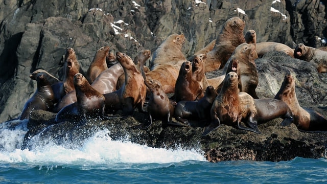 知床半島には毎年多くの野生のトドが飛来します。ただし、観測期間は短く、主に12月から1月の間です。 2月までにほとんどが沖合へ向かいます。 「知床海獣ツアー」は、この短い機会を最大限に活用できる野生動物ウォッチングツアーのひとつです。小さなボートに乗れば、数十頭のアシカが集まる場所のすぐ近くまで、アシカの息遣いを感じることができます。アシカの群れを間近で見るのは、畏敬の念を抱かせる体験です。