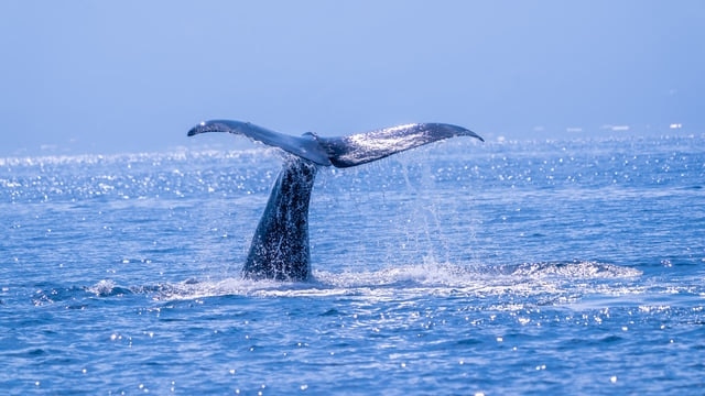 マッコウクジラはハクジラ科の中で最大であり、世界最大の歯のある動物です。体長の約 3 分の 1 を占める大きな頭があり、主にイカを捕食します。水深 3,000 メートル以上まで潜ることができ、最長 40 分間水中に滞在することができます。深く潜る直前に尾を高く上げます。これがシャッターチャンスです。