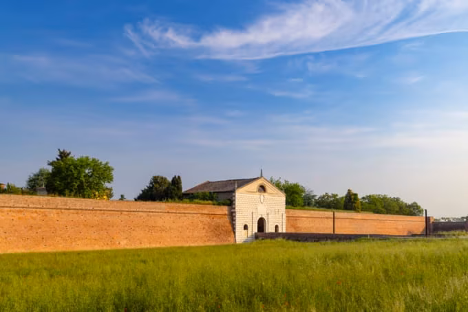 マントヴァの北西約 30 km にあるサッビオネータは、人口約 5,000 人の小さな町です。 16 世紀にイタリアの要塞建設の第一人者として知られるヴェスパシアーノ ゴンザーガによって建設されました。六角形の壁に囲まれた歴史的中心部は世界遺産に登録されており、ドゥカーレ宮殿、インコロナータ教会、古代劇場などのランドマークがあります。