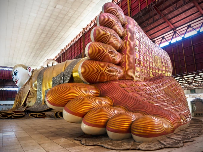 チャウタッジー仏陀寺院はおそらくヤンゴンで最も有名な仏教寺院です。それは、この国で最も象徴的な涅槃仏があるからです。巨大な仏像はカンドージー湖のすぐ北にある大きな小屋に安置されており、長さは 66 メートルあり、国内で最も長い仏像の 1 つです。この像は裕福なビルマ人によって 1899 年に依頼され、1907 年に完成しましたが、この像にはいくつかの欠陥があったため、1950 年代に取り壊され、その後再び再建されました。