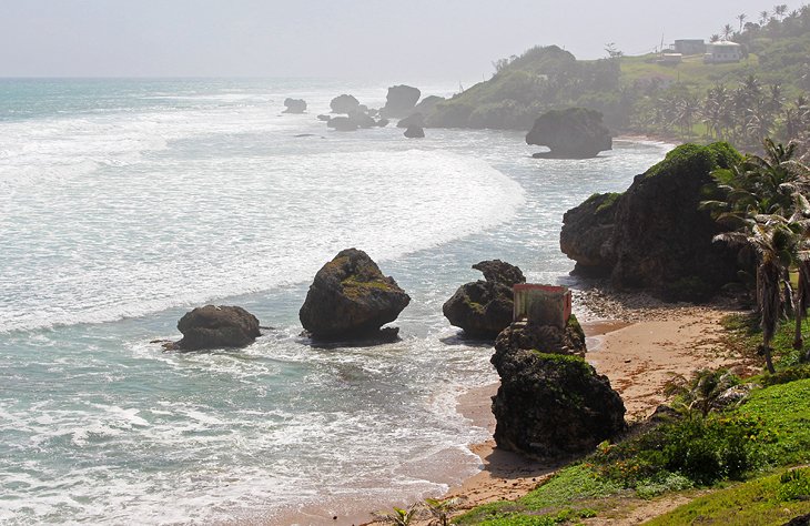 このリモートで開発されていないビーチは、バルバドスで最も絵のようなものの1つです。巨大なヤシの木の下に歩いて、ビーチに出ることができます。片方の端で崖の壁を探索するために時間をかけてください。ボトムベイの写真に最適な場所は、上の崖からです。駐車場からビーチを見下ろすエリアに向かいます。そこでは、美しいターコイズと青い色、その向こうの劇的な海岸線を見ることができます。