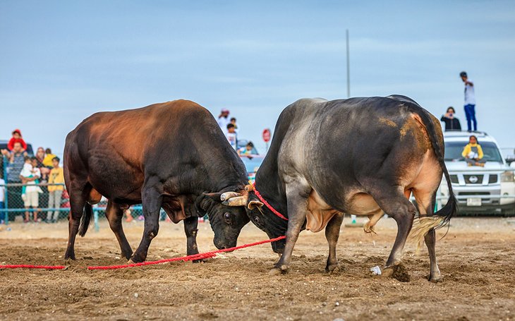 フジャイラで、ブルバッティングは人気のある家族イベントです。市の沿岸道路に沿った畑で、冬の間、毎週金曜日の夕方に行われます。
