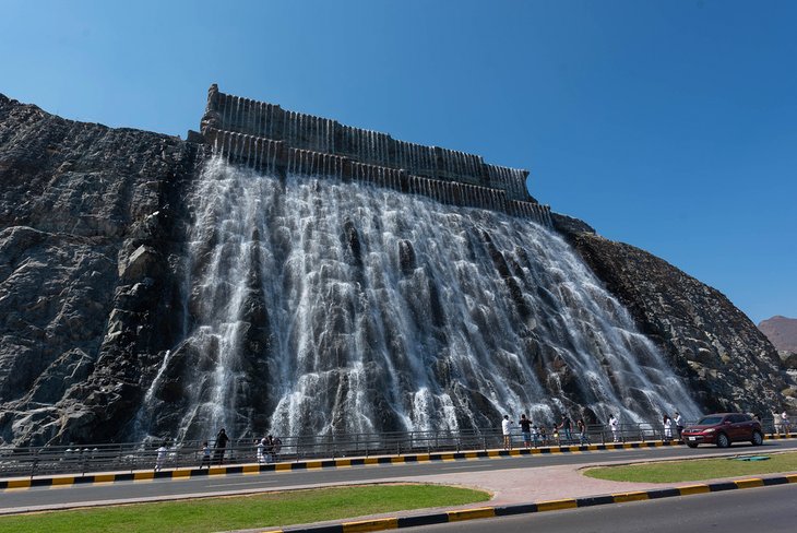 ビーチを見下ろす東海岸の主要な南北高速道路のすぐ中央のKhor Fakkanの町には、高さ43メートルの高さの滝があり、専用の岩だらけの崖の顔を流れ、古典的なローマー時代のスタイルで建てられた大きなモダンな劇場があります。